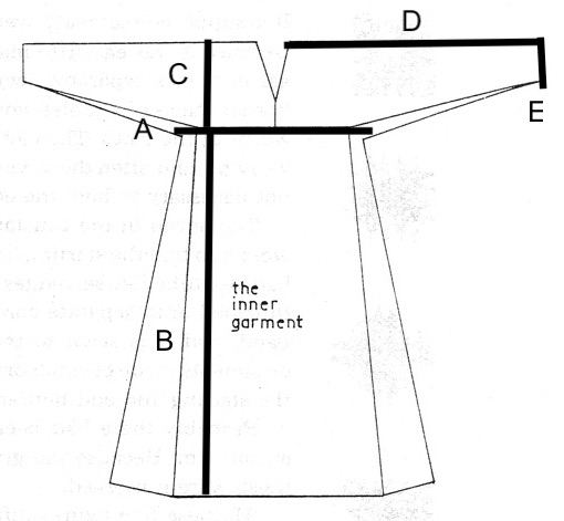 Her drawing below shows some of the variants of underdress construction. The great thing about rectangular construction is that it can be adjusted as needed depending on the dimensions of your fabric and the size of garment needed.
