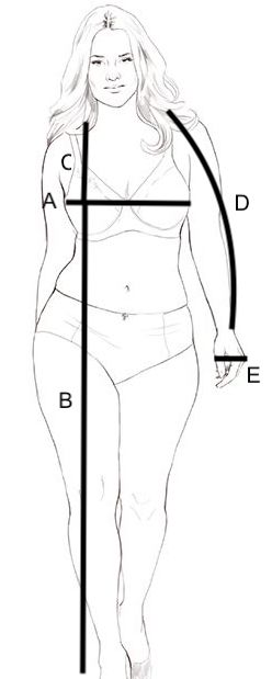 - For longer (slouchy at the wrist) sleeves add a couple inches to measurement D but keep the cuff (E) measurement the same